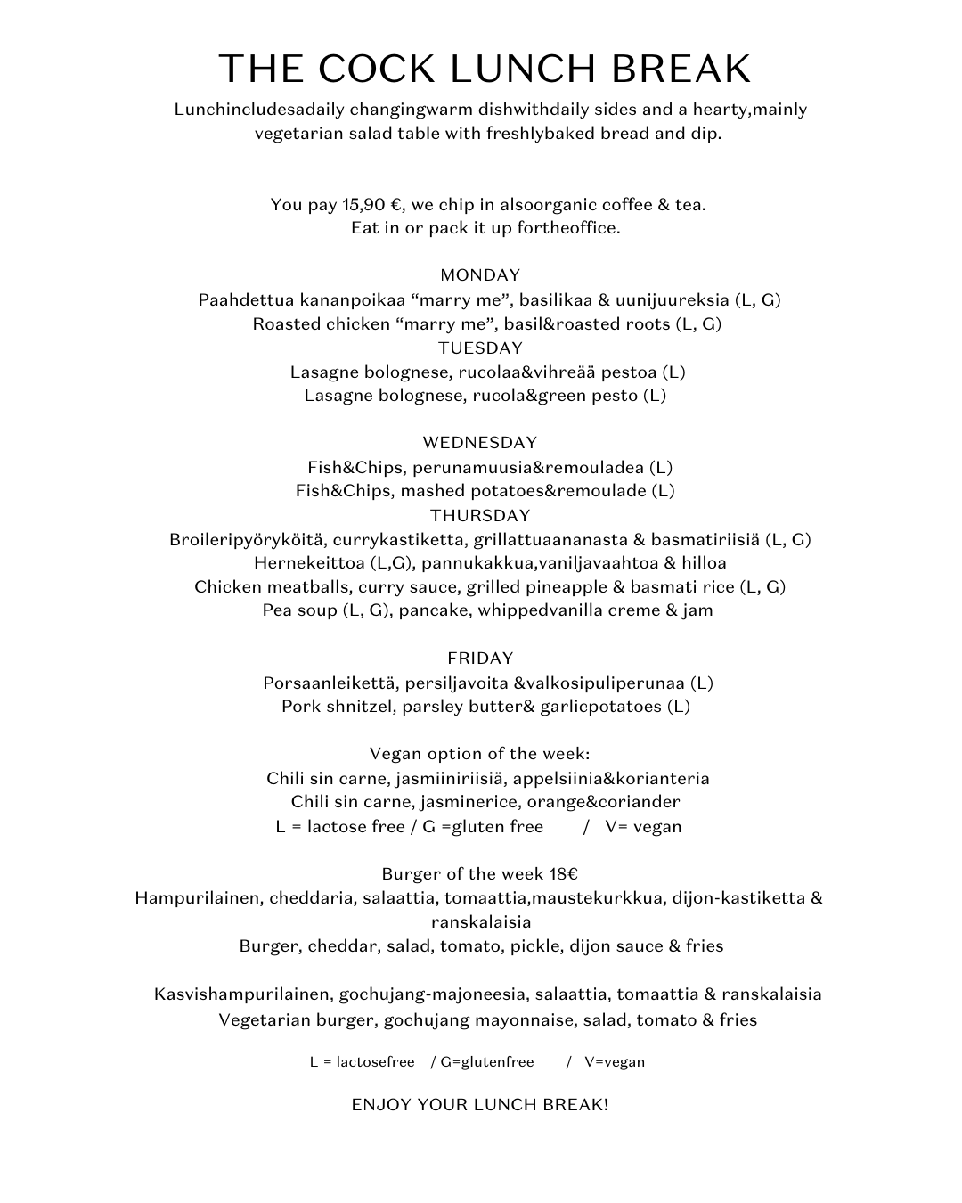 We serve Lunch from Monday to Friday 11-14:00